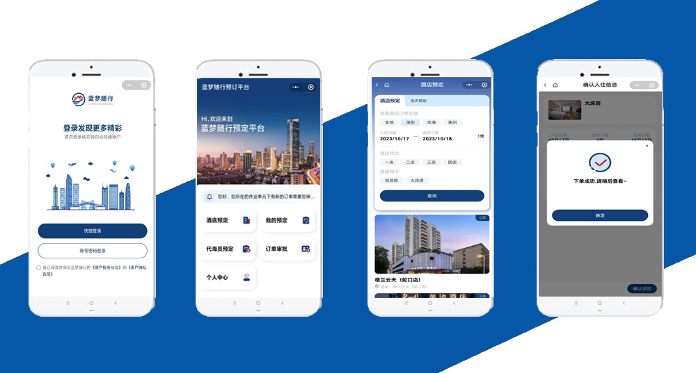 慶祝互諾科技成功簽約廣州行運易國際供應鏈有限公司網站建設協議。 藍夢隨行是一款城市旅游酒店預訂小程序。 互諾科技公司成立為2005年,始終致力于在信息技術領域發展,是企業網絡服務的推薦品牌。互諾客戶群主要集中在中國大陸及港、澳、臺等地區。互諾科技憑借創新的網站策劃理念,精湛的網站制作技術,以及豐富的互聯網營銷經驗,2005年至今已擁有客戶20000多。 用戶經過長時間的咨詢及比較,除了朋友的大力的推薦,互諾還提供眾多的成功案例,大大增加了合作的信心,最終在眾多網站建設公司中選擇了互諾科技的網站建設服務。